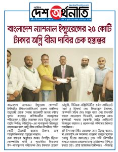 বাংলাদেশ ন্যাশনাল ইন্স্যুরেন্স কোম্পানি লিমিটেড (বিএনআইসিএল) তাদের অঙ্গীকার অনুযায়ী গ্রাহক সেবায় আরেকটি অনন্য দৃষ্টান্ত স্থাপন করেছে। প্রতিষ্ঠানটির ব্যবস্থাপনা পরিচালক ও সিইও মোহাম্মদ সানা উল্লাহ্ মেসার্স অটো স্পিনিং লিমিটেড-এর ব্যবস্থাপক মিজানুর রহমানের হাতে অগ্নি বীমা দাবির বিপরীতে পঁচিশ কোটি উনষাট হাজার টাকার চেক আনুষ্ঠানিকভাবে হস্তান্তর করেন।